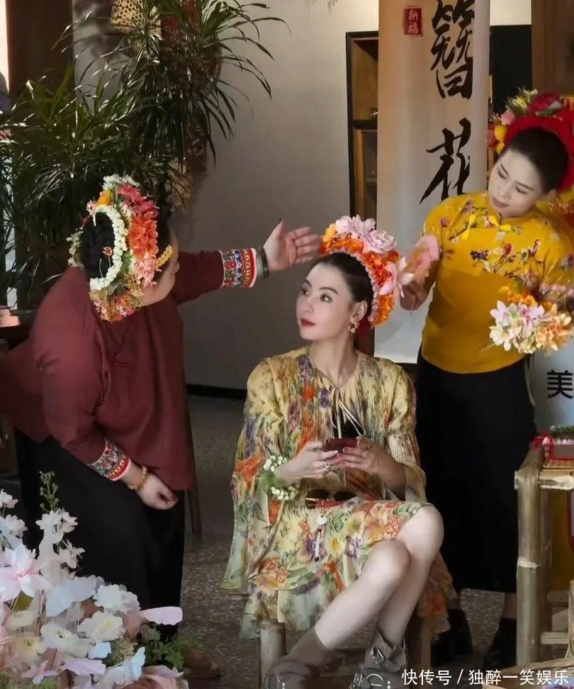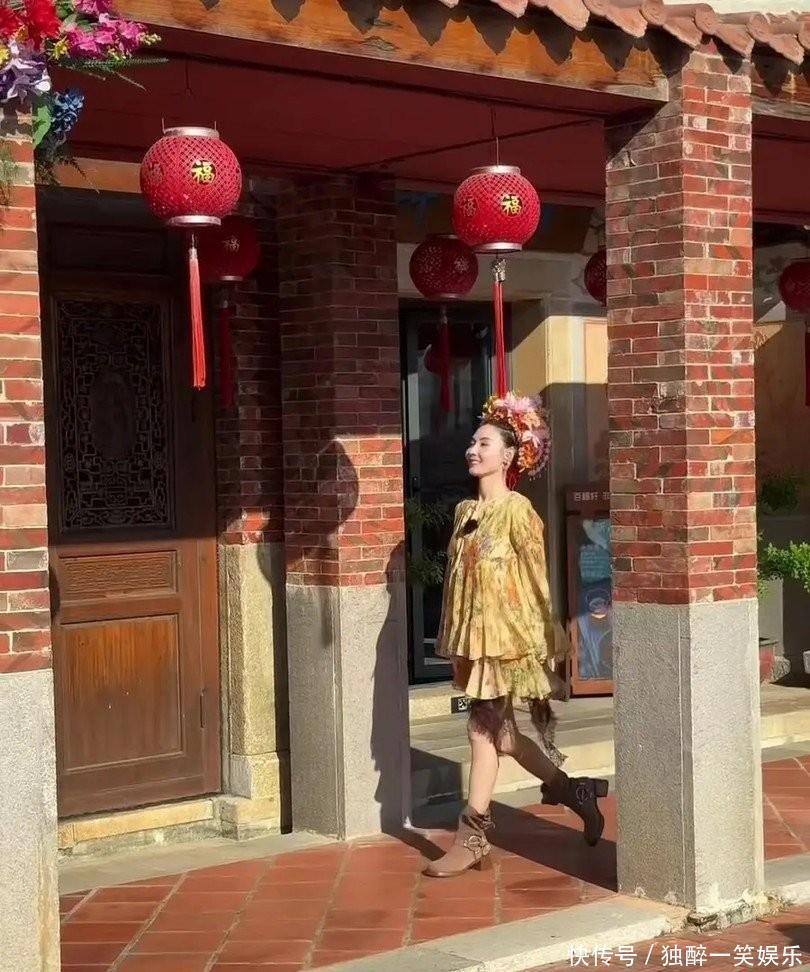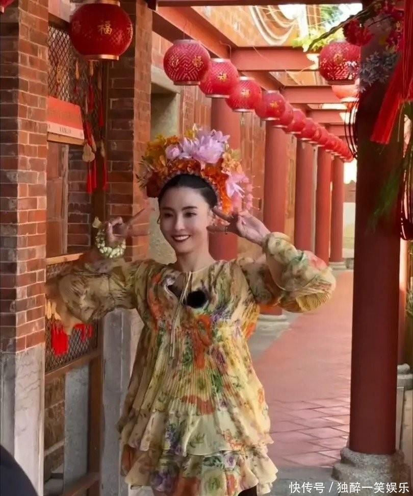 10日,节目组去了泉州梧林的传统村落,她作为嘉宾到场,风从古厝巷口掠过,黄墙暗影里,簪花的枝叶顺着她的发髻轻轻垂下她穿着黄色碎花短裙,配同色系的簪花,镜头里一笑,整个人像一束迎着海风的花,干净又明亮我原以为簪花离日常有点远,结果她一出场,那种老习俗和日常生活竟被她拢在一起,变得亲近起来录制间隙,她举着手机不停自拍,动作轻松,像是在和老朋友打招呼状态好的时候,连光都愿意停在她脸上多一会日,她把这组簪花造型发上社交平台,配文没多讲什么,但图片已经替她说尽评论区很热闹,有人反复夸“明艳”“优雅”,也有人直接喊“美翻了”热度不是空穴来风,前一晚的路透里,别的嘉宾热闹喜庆,她却靠着一个“松弛”的眼神把复杂的妆造化成了“刚刚好”